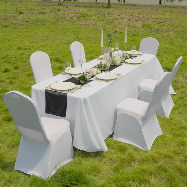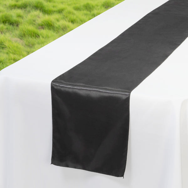 Beautifully decorate your table settings with our Table Tek Black Satin Table Runners. With an elegant black finish, these fabric table runners give your tablescapes a touch of sophistication. Featuring a satin weave, these black table runners have a silky look and feel to impress your guests at catered events. The one-piece design of these tablecloth runners creates a seamless appearance to enhance your dining table decorations. To shorten your cleaning process, these luxury table runners are machine-washable on the gentle cycle with cold water. These runners cannot be washed with bleach to avoid damage. For easy maintenance, these tablecloth runners can be put in the dryer using a medium heat setting to protect against wrinkles. These dining table runners measure 12 inches long by 108 inches wide. Sold in a 10 count box.