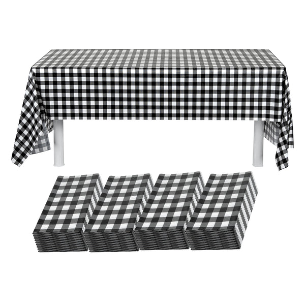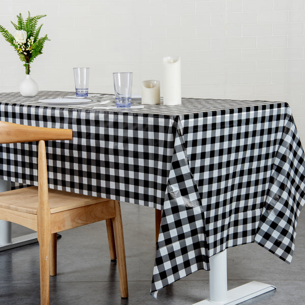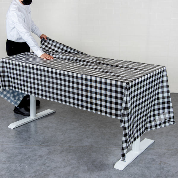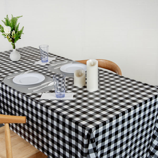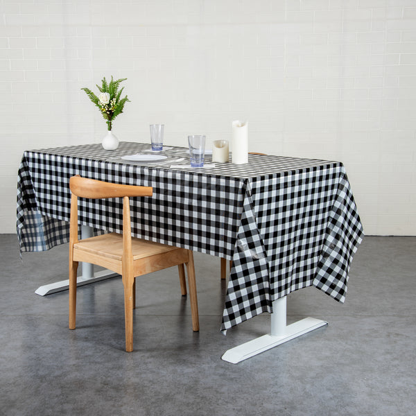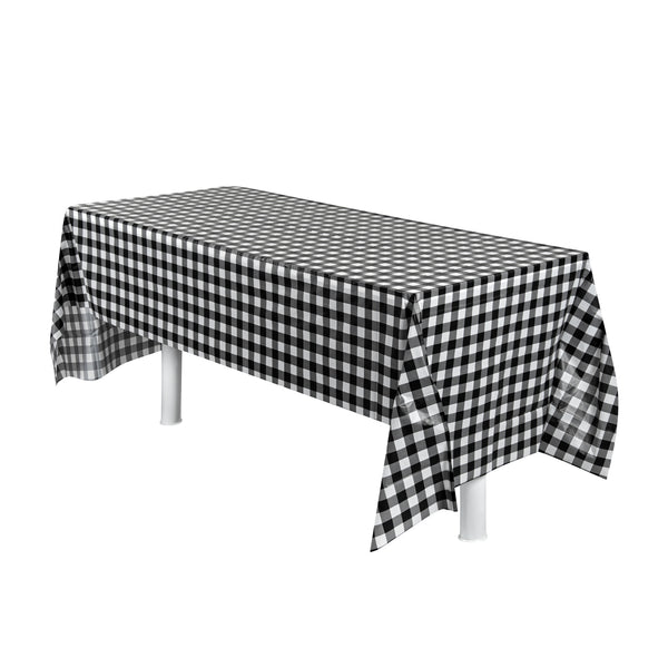 RECTANGLE BLACK GINGHAM PLASTIC TABLE COVER