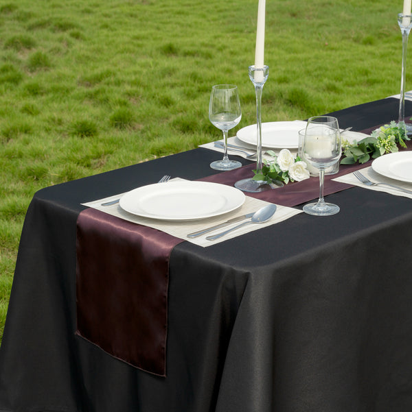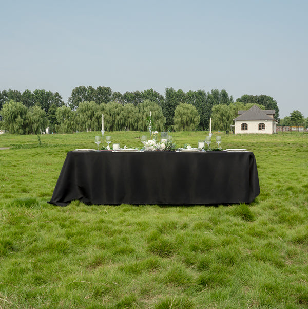 RECTANGLE BLACK POLYESTER CLOTH TABLE COVER - HEMMED