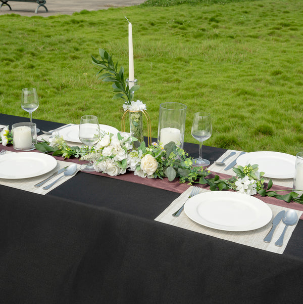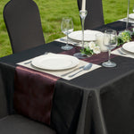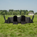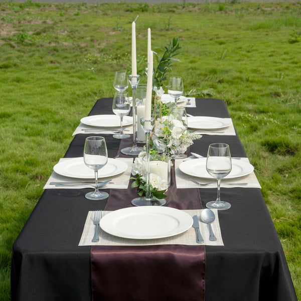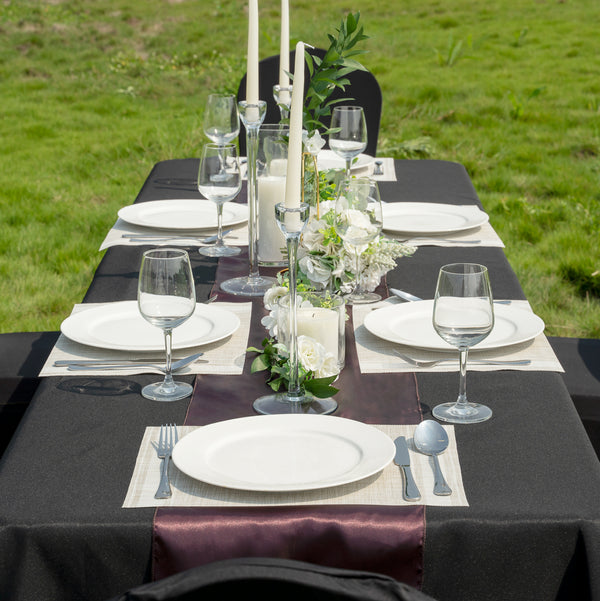 Add protection and style to tables at events using our Table Tek Rectangle Black Polyester Cloth Table Covers. Perfect for weddings, banquets, or restaurants, these black tablecloths fit onto tables that measure 132 inches in length and 90 inches in width. Crafted with premium polyester, these tablecloths for events fit tables and create an elegant look. These rectangle table covers feature a hemmed design that adds style to table presentations. Great for maintaining their appearance, these table covers are wrinkle-resistant so you can minimize ironing in between uses. These stain-resistant tablecloths can be machine washed in a gentle cycle with cold water and air-dried for an easy way to thoroughly clean them after events. To avoid damaging this spandex table cover, do not clean with bleach. These tablecloths for events measure 132 inches in length and 90 inches in width. Shipped in a 10 count box.