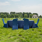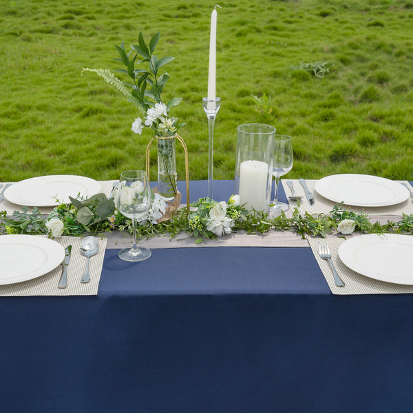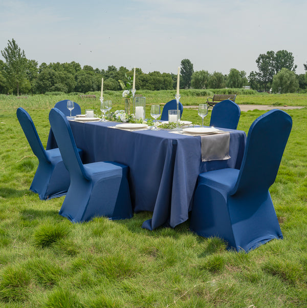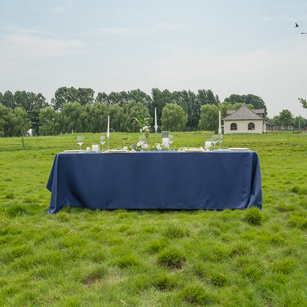Protect your table from scratches with our Table Tek Rectangle Blue Polyester Cloth Table Cover. Made from polyester, this tablecloth is stain-resistant to keep your table free from damage. The hemmed design of this wedding tablecloth prevents fraying, making it perfect for long-lasting use. This blue table cover is wrinkle-free so you won't have to worry about ironing. With a blue finish, this table cover adds an elegant touch to your banquet table. For a quick cleaning process, this blue table cover is machine-washable in the gentle cycle with cold water and should be air-dried. To maintain its premium look, do not use bleach to clean this tablecloth. This hammed table cover measures 90 inches long by 132 inches wide, making it ideal for rectangular tables. Sold in a 1 count box.