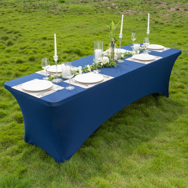 Made from a stretchable fabric, these spandex table covers stretch to fit various table shapes and sizes. Provides exceptional stretchability to conform to even unconventional table shapes unlike standard tablecloths.