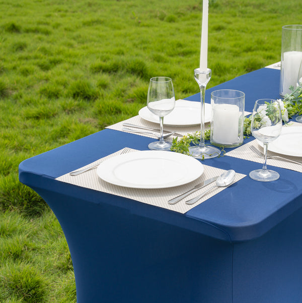 These spandex tablecloths can be washed in a washing machine or spot cleaned to simplify the cleaning process. The blend of polyester and spandex makes it easy to remove spills to maintain a clean and neat table.