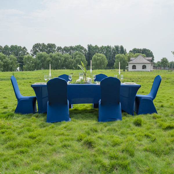 These premium spandex tablecloths come in a wide range of colors and sizes to perfectly fit the tables at weddings, exhibitions, or parties and give them a smooth and high-fashion appeal. Fit your rectangular or round tables!