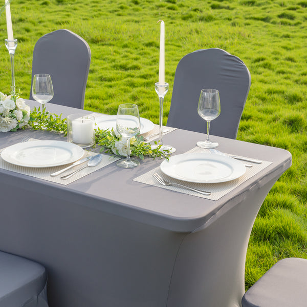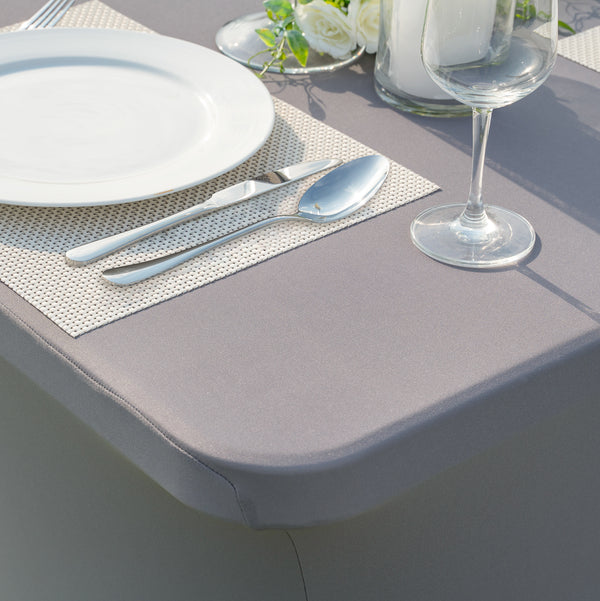 Made from a stretchable fabric, these spandex table covers stretch to fit various table shapes and sizes. Provides exceptional stretchability to conform to even unconventional table shapes unlike standard tablecloths.
