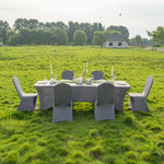 Designed for easy installation, these fitted table covers have reinforced feet that slip over the table legs, holding the cover securely in place. Ensure a tight fit without slipping or shifting during use.