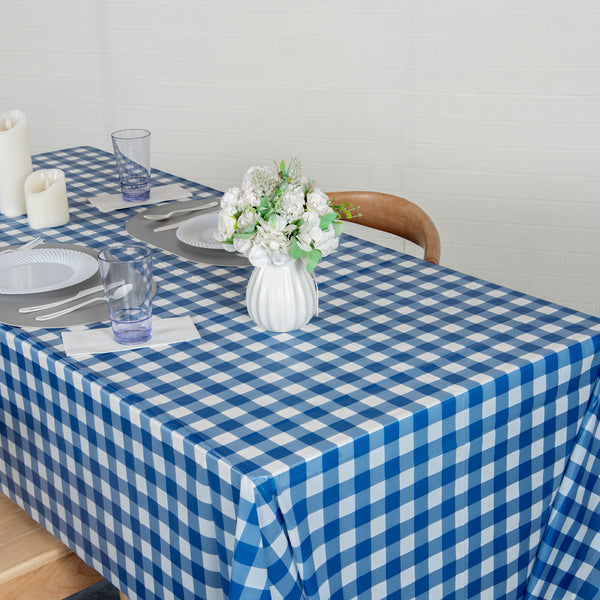 RECTANGLE GINGHAM BLUE PLASTIC TABLE COVER