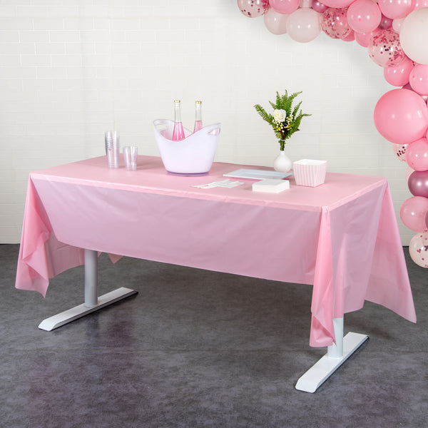RECTANGLE PINK PLASTIC TABLE COVER
