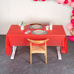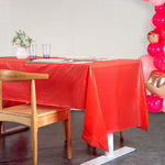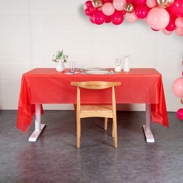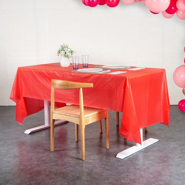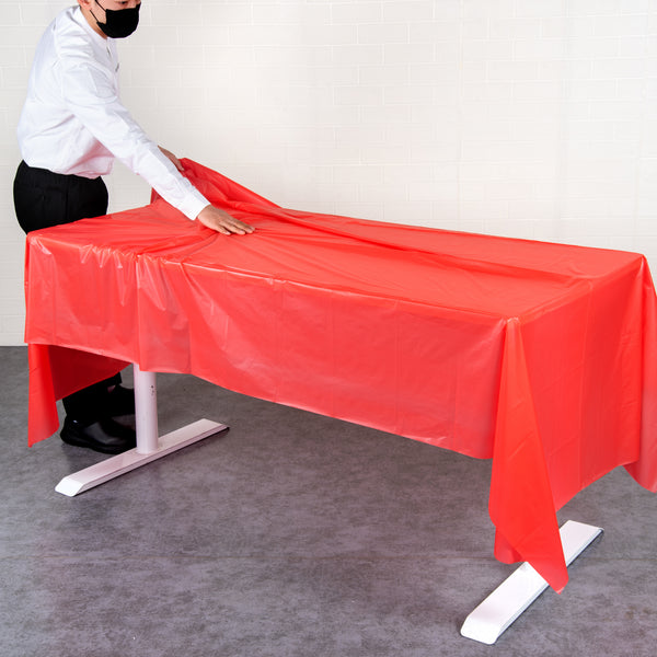 Transform any event with our Table Tek Rectangle Red Plastic Table Covers that instantly enhance the look of your space. These durable table covers are designed to withstand spills and messes, making clean-up a breeze in any bustling food service environment. The vibrant red color of these plastic table covers adds a touch of elegance to your dining area, making them ideal for all kinds of events. With their waterproof plastic design, these table covers ensure your tables stay dry and protected at both indoor and outdoor gatherings. These disposable table covers are also wrinkle-resistant, ensuring a sleek and tidy appearance at all times. Measuring a generous 108 inches in length by 54 inches in width, these table covers provide ample coverage for a wide range of table sizes. Sold in a 2 count box.