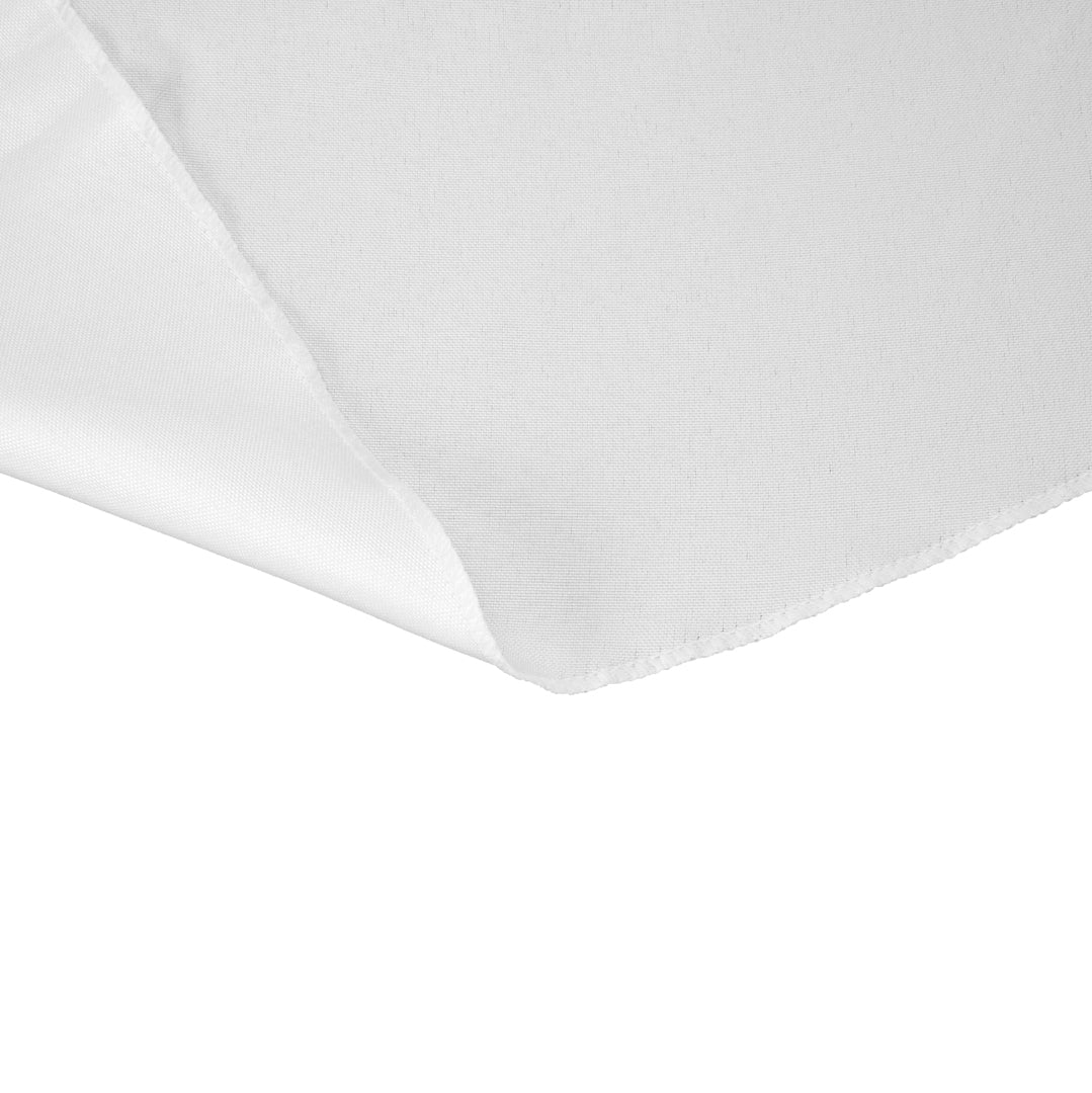 Stylishly cover up your tables with our Table Tek Rectangle White Polyester Cloth Table Covers. Constructed from polyester, these rectangular tablecloths are stain-resistant to protect your dining tables from damage. Featuring hemmed edges, these white tablecloths won't fray so you can use them for a long time at your restaurant or banquet. To avoid the hassle of ironing, these dining room tablecloths are wrinkle-free. The sophisticated white finish of these hemmed table covers effortlessly matches the theme of your catered event. For easy cleanup after serving guests, these wedding tablecloths are machine-washable in the gentle cycle with cold water and should be air-dried. To keep their high-quality look, these tablecloths cannot be washed with bleach. Measuring 90 inches in length by 132 inches in width, these white table covers fit most rectangular tables. Sold in a 10 count box.