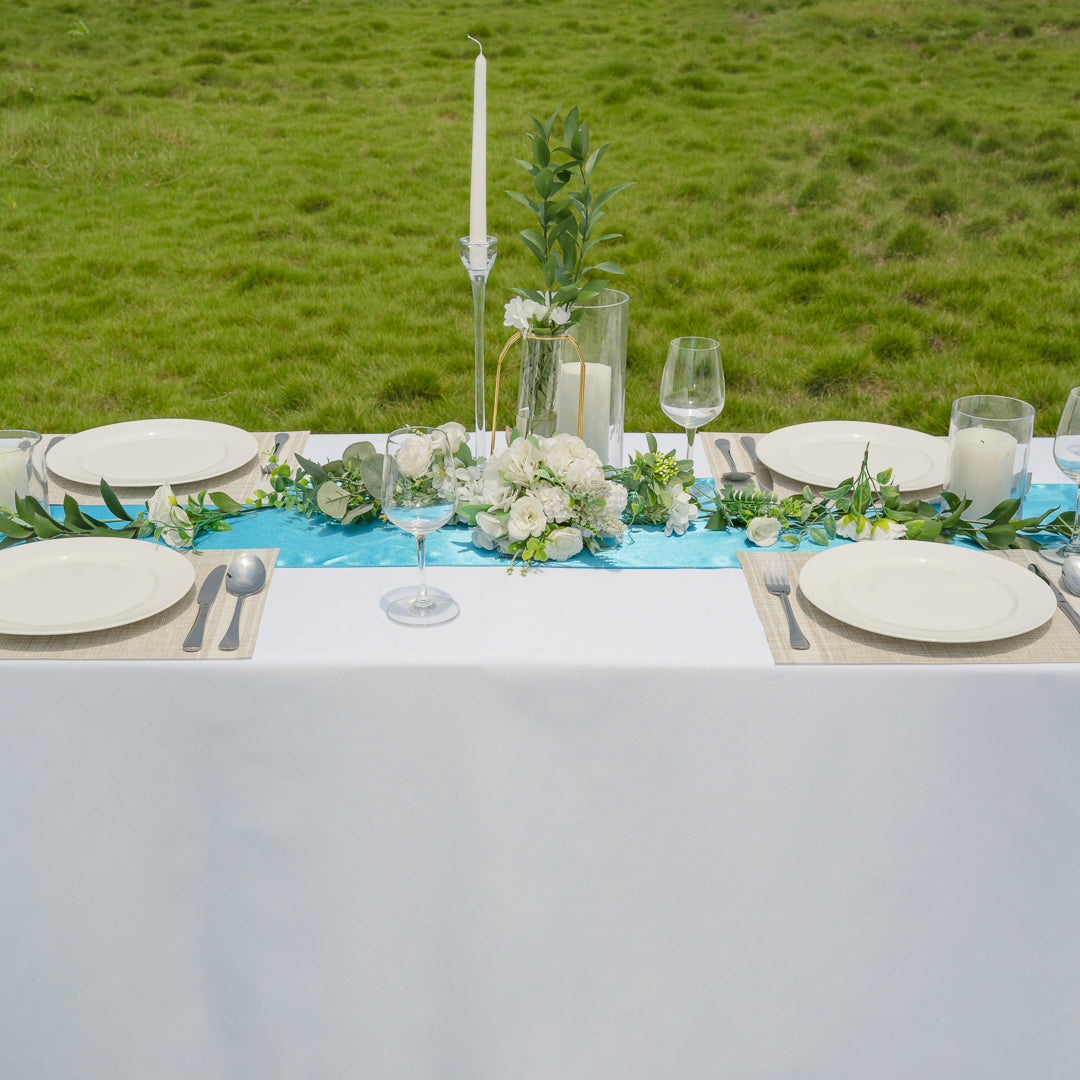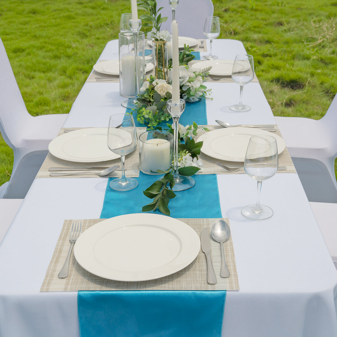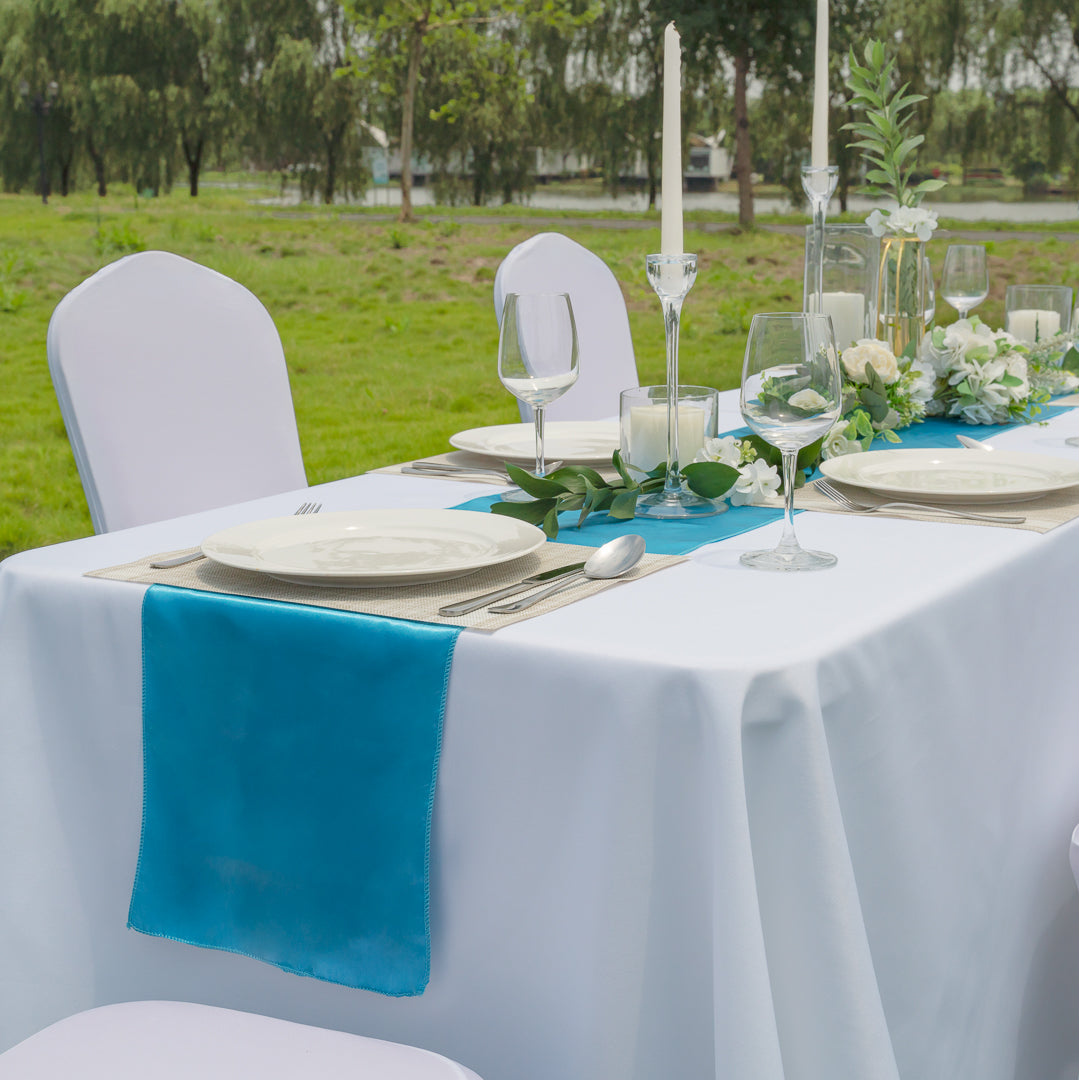RECTANGLE WHITE POLYESTER CLOTH TABLE COVER - HEMMED