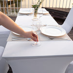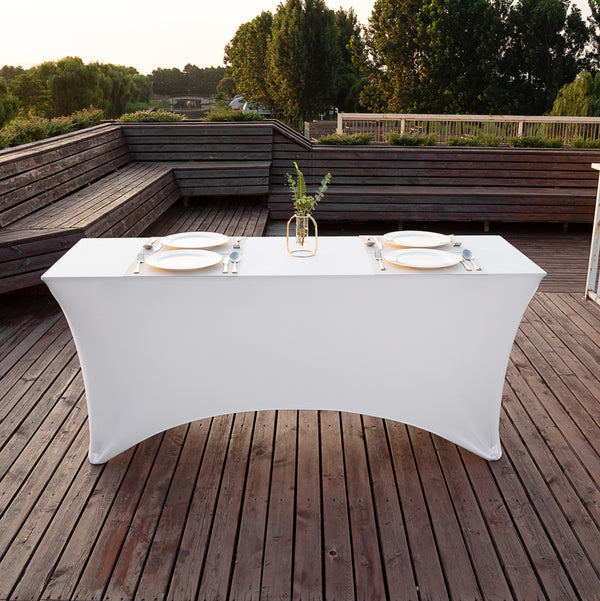 Made from a stretchable fabric, these spandex table covers stretch to fit various table shapes and sizes. Provides exceptional stretchability to conform to even unconventional table shapes unlike standard tablecloths.