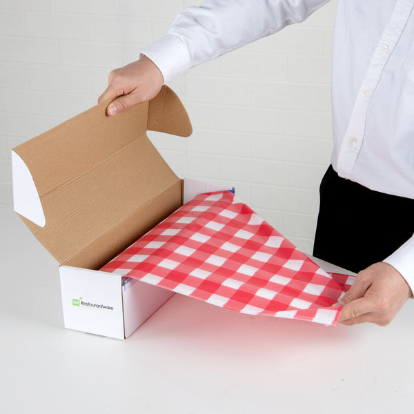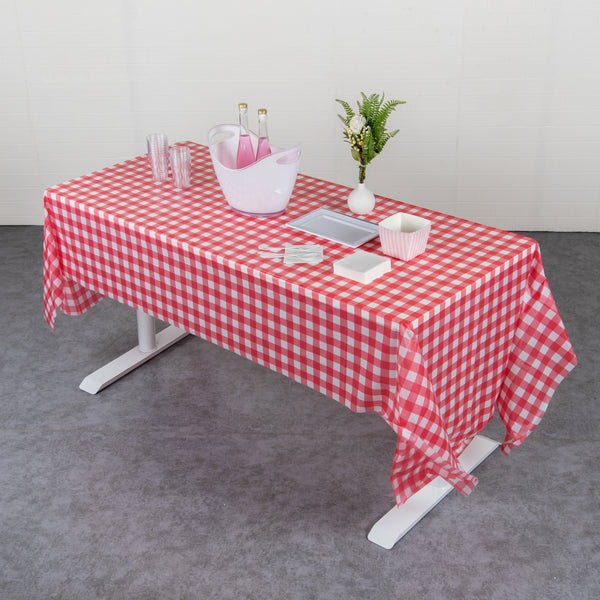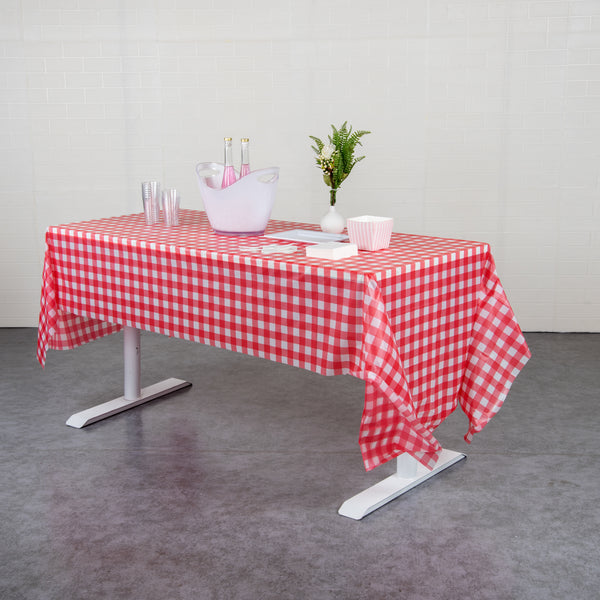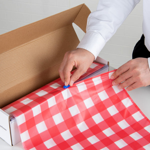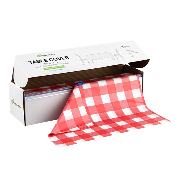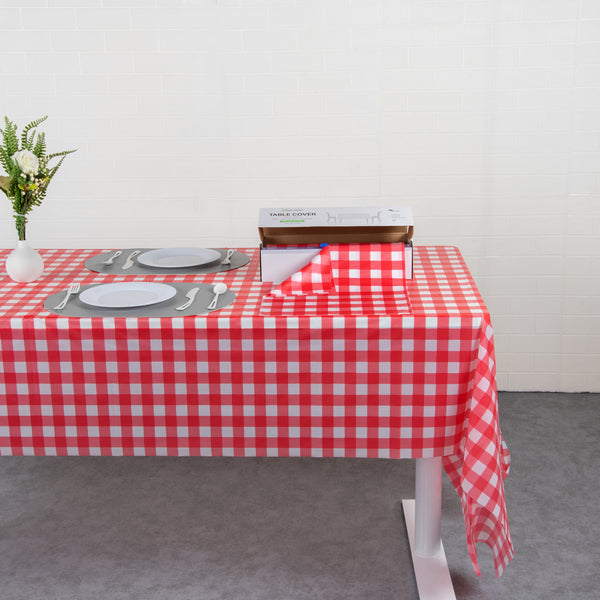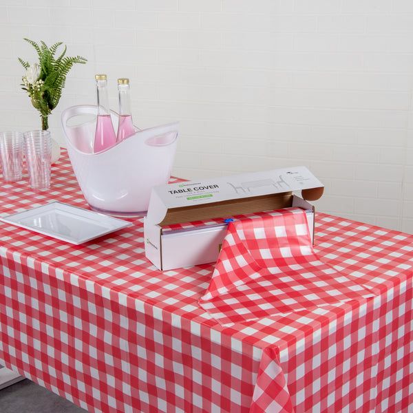 RED GINGHAM PLASTIC TABLE COVER ROLL - WITH SLIDE CUTTER