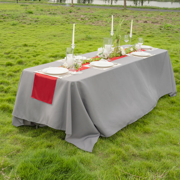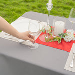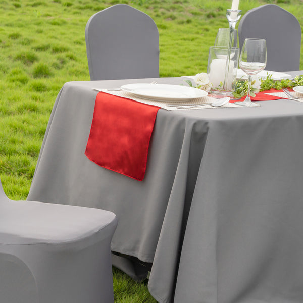 Decorate tables with elegance using our Table Tek Red Satin Table Runners. The red finish and satin weave of these fall table runners brings a bright shine to the decor at catered celebrations. These kitchen table runners feature a seamless one-piece design so you can arrange tables with ease. Made from high-quality polyester, these red table runners are machine-washable in the gentle cycle with cold water for a quick way to keep them clean in between uses. To help avoid wrinkles after washing, simply run these red table runners through the dryer at a medium heat setting. These kitchen table runners measure 108 inches in length and 12 inches in width. To maintain their stunning appearance, do not bleach these table runners. Shipped in a 10 count box.