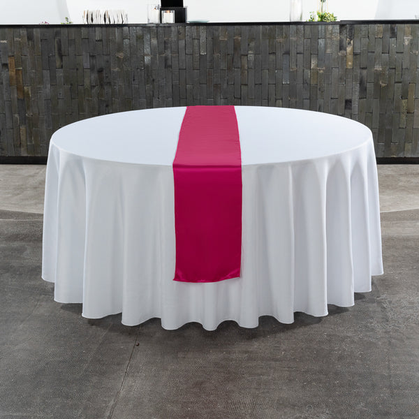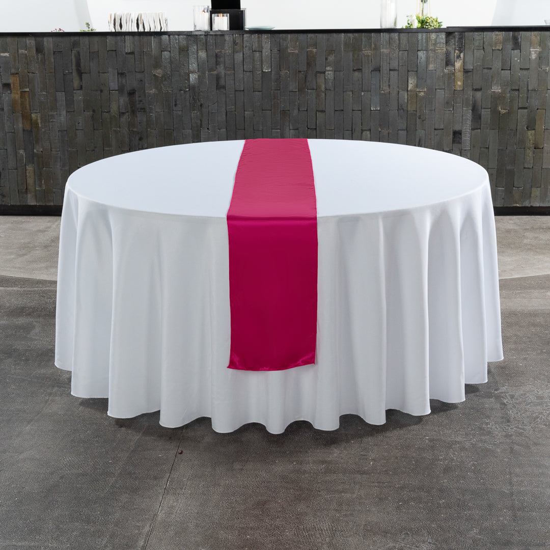 Give your dining table a splash of color using our Table Tek Rose Satin Table Runner. This 108-inch table runner has a rose finish that can be used to harmonize tablecloths and bring life to tables. With a satin weave, this rose table runner has a glossy look that adds an elegant touch to tables while complementing the ambiance at weddings, banquets, or restaurants. This polyester table runner is seamless so you can easily create neat and luxurious table settings. To speed up your cleaning process, this one-piece table runner can be machine washed in a gentle cycle with cold water and tumble-dried using medium heat. You should not bleach this fancy table runner to maintain its premium appearance. This table runner for events measures 108 inches long by 12 inches wide. Sold in a 1 count box.