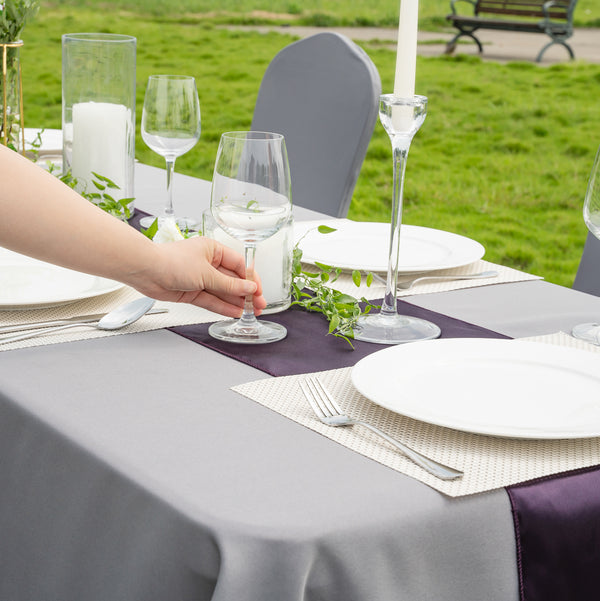- Satin weave elevates tablescapes with sophistication and luxurious shine to tablescapes