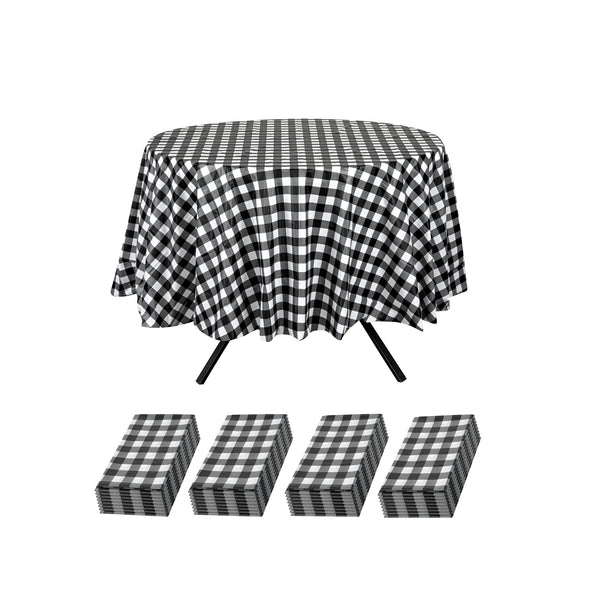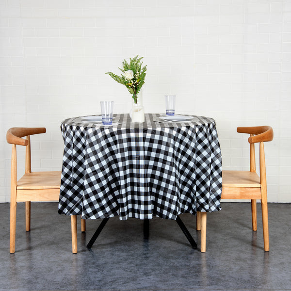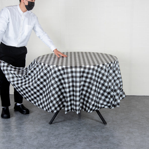 ROUND BLACK GINGHAM PLASTIC TABLE COVER