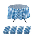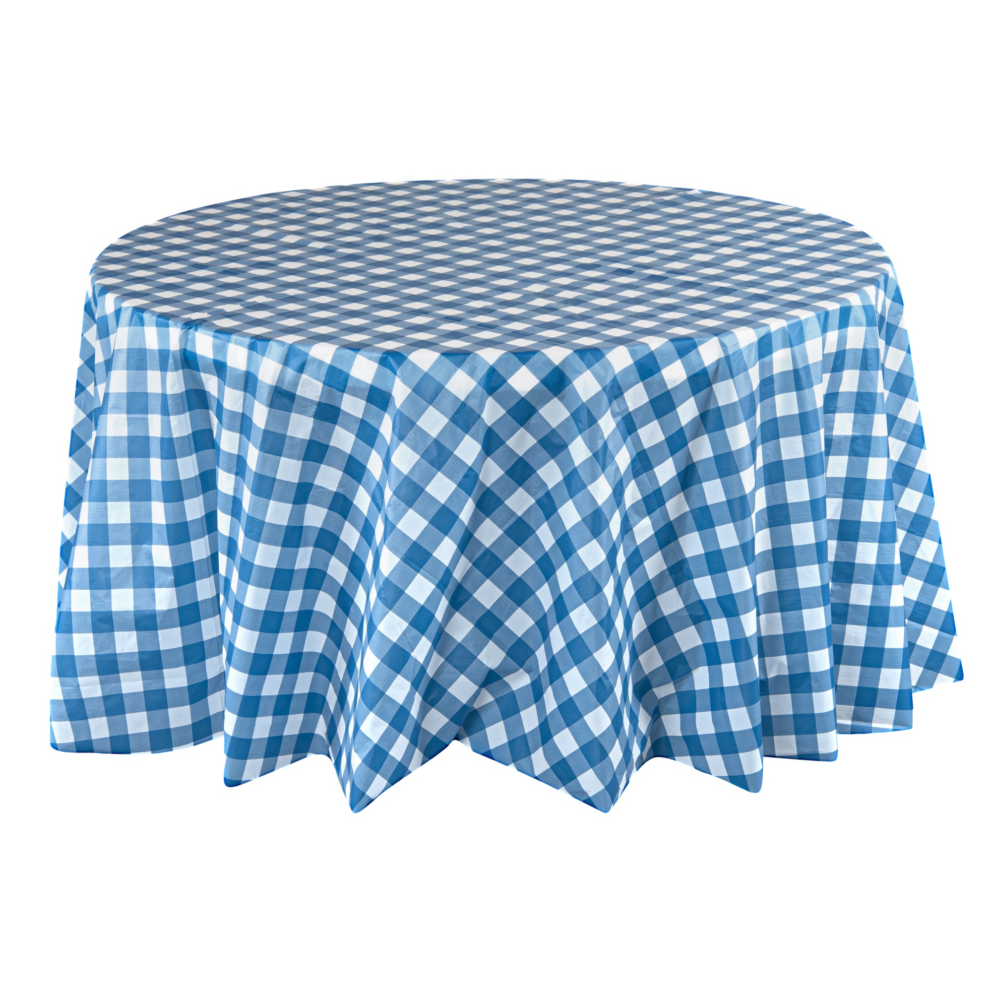 ROUND BLUE GINGHAM PLASTIC TABLE COVER