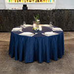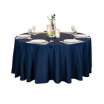 Impress guests with sophisticated tablescapes using our Table Tek Round Blue Polyester Cloth Table Covers. Crafted from premium polyester, these wedding tablecloths are stain-resistant to wipe off spills and leave no unsightly spots behind. Featuring a hemmed design, these polyester tablecloths won't fray so you can use them over and over again. To avoid the hassle of ironing, these blue table covers are wrinkle-free. With a blue finish, these table covers effortlessly match the environment at your restaurant or catered event. For quick and easy cleanup after use, these round tablecloths are machine-washable in the gentle cycle with cold water and should be air-dried. To maintain the quality of the fabric, these hemmed table covers cannot be cleaned with bleach. Measuring 120 inches in diameter, these dining room tablecloths fit perfectly over your round tables. Sold in a 10 count box.