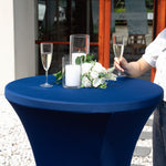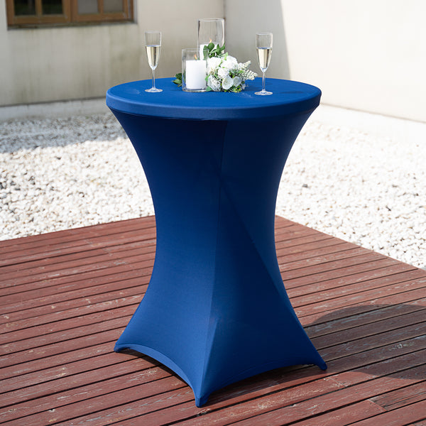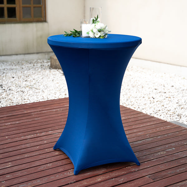 ROUND BLUE SPANDEX TABLE COVER - BAR HEIGHT