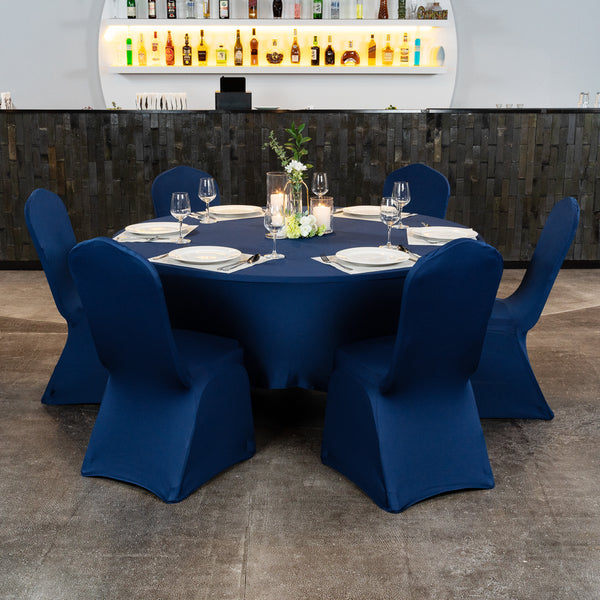These spandex tablecloths can be washed in a washing machine or spot cleaned to simplify the cleaning process. The blend of polyester and spandex makes it easy to remove spills to maintain a clean and neat table.