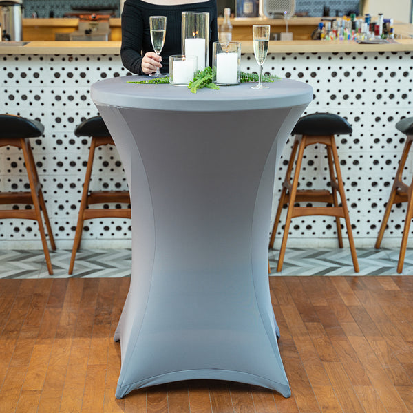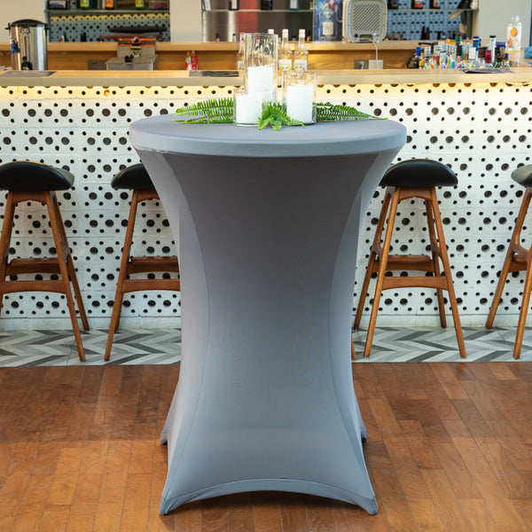 ROUND GRAY SPANDEX TABLE COVER - BAR HEIGHT