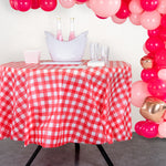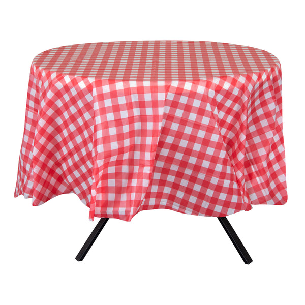ROUND RED GINGHAM PLASTIC TABLE COVER