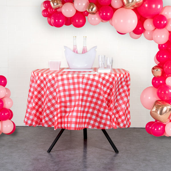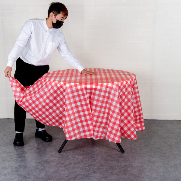 Transform your setting with our Table Tek Round Red Gingham Plastic Table Covers. These red table covers add a vibrant touch that is sure to catch the eye of your guests. Made from durable material, these plastic table covers withstand spills and stains, making them perfect for any event. Being waterproof, these table covers are ideal for both indoor and outdoor events, protecting your tables from unexpected weather or spills. The wrinkle-resistant feature of these round table covers ensures your tables always look neat and appealing. With a generous size of 84 inches in diameter, these round table covers are perfect for large round tables, accommodating all kinds of events. Sold in a 2 count box.