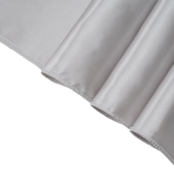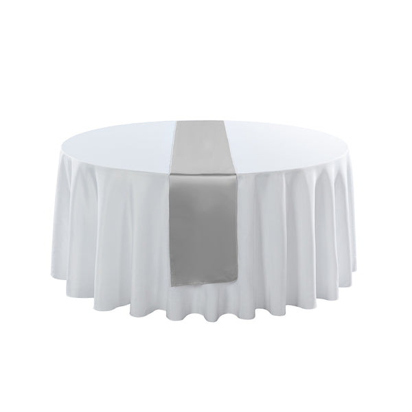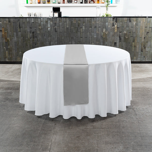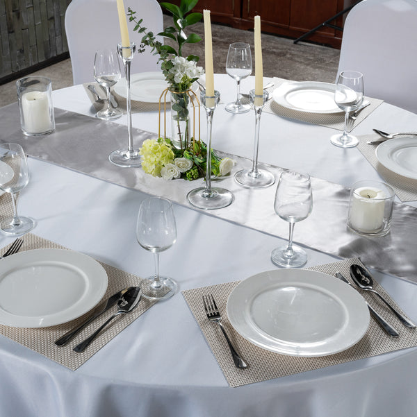 Create unforgettable table settings using our Table Tek Silver Satin Table Runners. The silver finish and satin weave of these table runners perfectly complement the decor of your event. These silver table runners are made with high-quality polyester that is durable and soft to the touch. Featuring a one-piece design, these seamless event table runners allow you to quickly set tables. For quick and hassle-free cleaning after use, these satin table runners are machine-washable in the gentle cycle with cold water. To avoid ironing, these silver table runners can be put in the dryer at a medium heat setting. These modern table runners measure 108 inches in length and 12 inches in width. To maintain their premium appearance, do not use bleach on these table runners. Sold in a 10 count box.