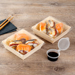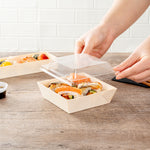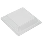 Ensure secure transport for your meals with our Taipei Clear Plastic Lids. Made of premium plastic, these transparent lids have a sturdy and durable construction that won't crack easily. Pair these clear plastic lids with their coordinating poplar food containers (SKU:RWB0371) to form a tight seal for your take out orders. These durable plastic lids have an elevated design to provide more room for food toppings. The clear finish of these food container lids allows guests to instantly look at their contents without the need to open them. These disposable square container lids are recyclable to facilitate an environmentally friendly cleanup. Each plastic lid measures 5.25 inches in length by 5.25 inches in width by 1 inch in height. Sold in a 100 count box. Lids and containers are sold separately.