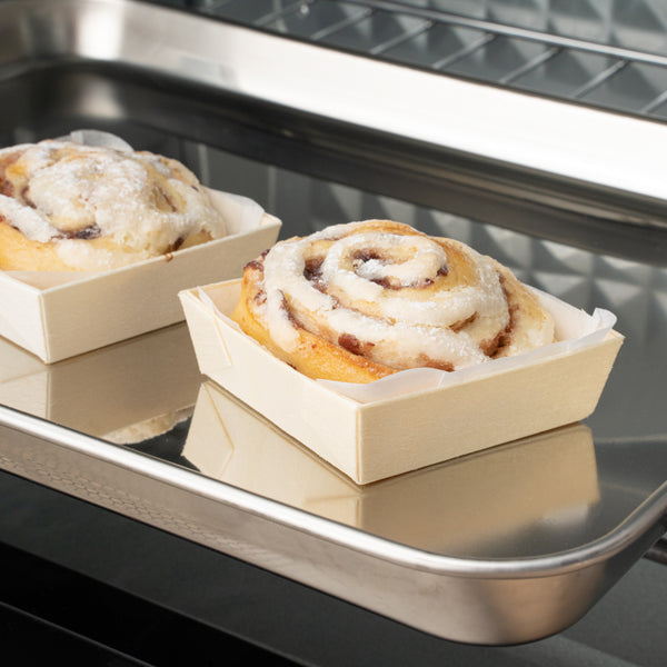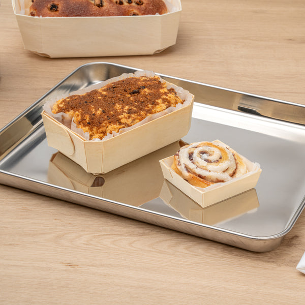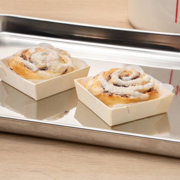 Bake mini tea cakes or quiches using our Taipei Poplar Baking/Serving Containers. Made with high-quality poplar wood, these wooden baking trays are commercially compostable for an easy and eco-friendly way to dispose of containers after baking. Ideal for serving fresh salads or focaccia, our wooden bakeware includes a greaseproof silicone paper liner that simplifies the process of removing baked goods from molds. These bread baking pans are microwave-safe and oven-safe up to 428F so you can bake brownies to perfection or quickly reheat leftovers. To make the most out of storage space in your kitchen, simply stack these wooden baking trays together. Our wooden bakeware holds up to 3 ounces so you can easily serve individual portions for guests. These bread baking pans measure 2.7 inches in width by 2.7 inches in length and 0.7 inches in height. Sold in a 100 count box.