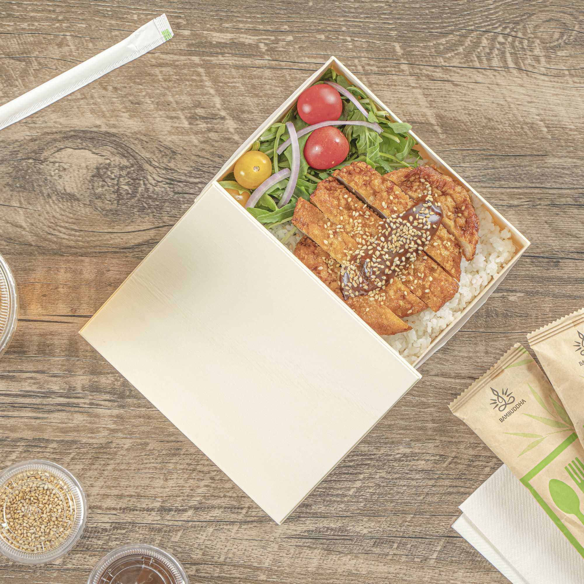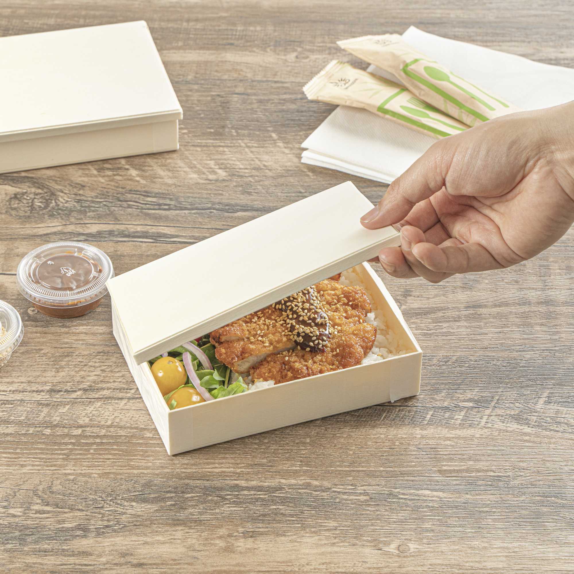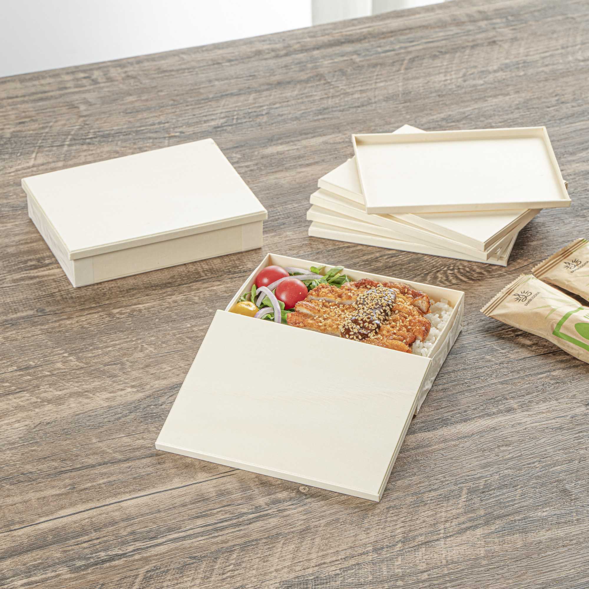Bring a touch of sophistication to your packaging with our Taipei Rectangle Natural Poplar Lids. Designed to fit securely on our 24-ounce rectangular wooden bento boxes (SKU: RWB0792K-10), these lids help maintain presentation and protect contents during transport. Made from natural poplar wood, they are biodegradable and commercially compostable, perfect for businesses focused on sustainable practices. Freezer-safe and durable, they accommodate a range of food prep and service styles. Inspired by traditional Japanese design, their warm wood tone complements a variety of meals from sushi to desserts. Each lid measures 6.5 inches in length by 4.72 inches in width. Sold in a 10 count box.