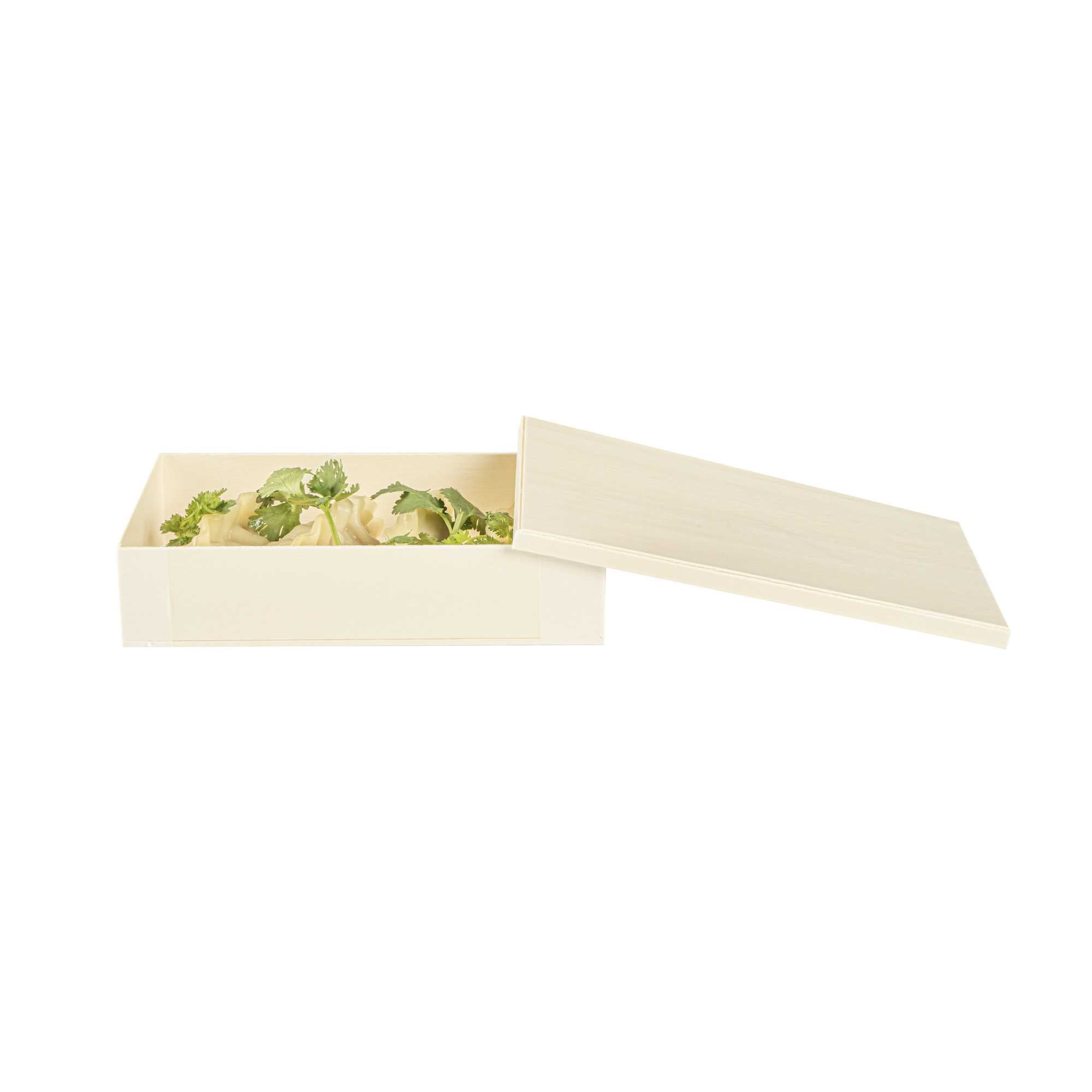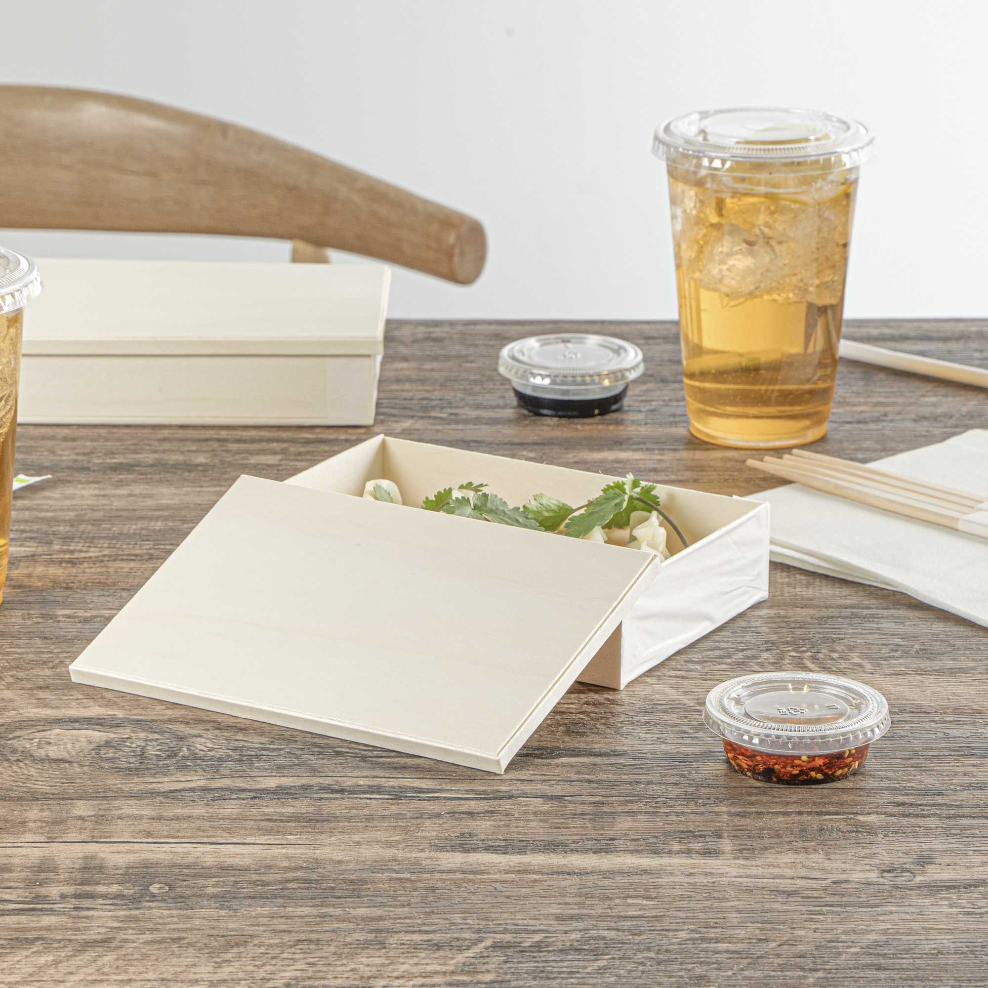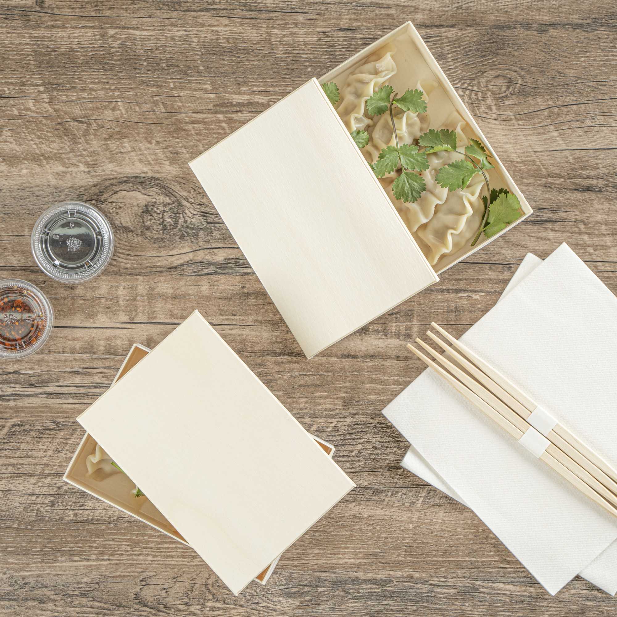 Enhance your food presentation and delivery with our Taipei Rectangular Natural Poplar Lids. Designed for a snug, secure fit, these lids pair perfectly with our 25-ounce rectangular wooden bento boxes (SKU: RWB0788K-10), keeping meals intact during transport and elevating the customer experience. Crafted from poplar wood, these poplar lids are biodegradable and commercially compostable, helping your business align with environmentally conscious goals while maintaining a premium appearance. Freezer-safe for pre-prepped meals and durable enough for a variety of service styles, they offer the flexibility today’s foodservice operations demand. Featuring a traditional Japanese-inspired design, these wooden lids lend a warm, natural aesthetic that complements sushi, snacks, and portioned meals. Each lid measures 6.89 inches in length by 4.53 inches in width. Sold in a 10 count box.