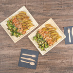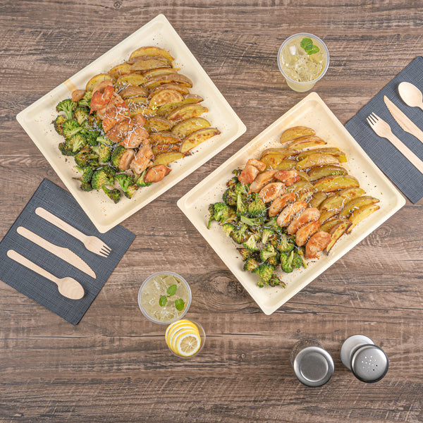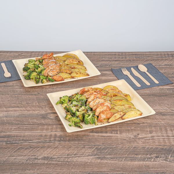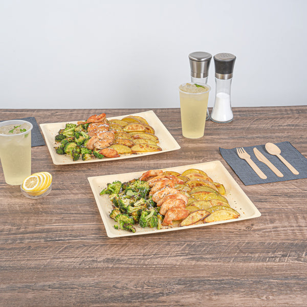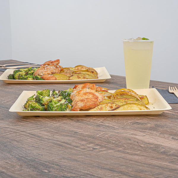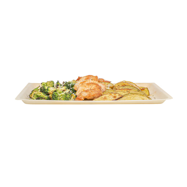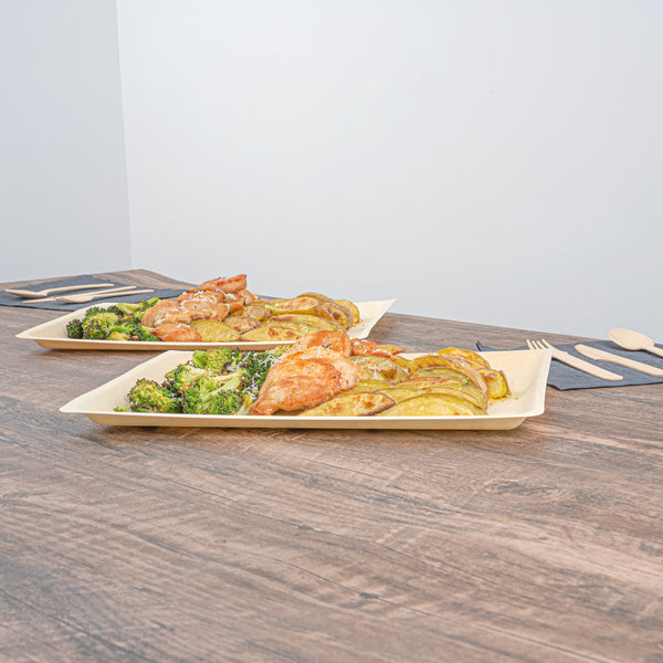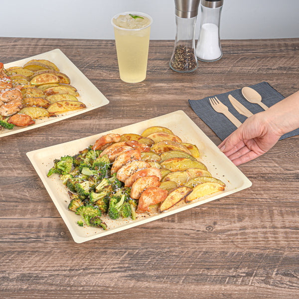 Present gourmet meals with our Taipei Rectangle Natural Poplar Plates. Constructed from poplar wood, these party plates have a robust body and are ideal for serving meals such as savory grilled chicken to refreshing fruit salads. Designed to be greaseproof, these food plates provide a worry-free solution for serving saucy dishes and ensure no leakage or seepage during use. These serving plates are biodegradable and commercially compostable, offering an environmentally-friendly option for your dining needs. With a sleek rectangular shape, these disposable plates offer a modern and stylish presentation for your culinary creations. These serving dishes feature a neutral finish that exudes elegance, providing a versatile backdrop for any culinary presentation. Measuring 13 inches in length by 10.5 inches in width, these pasta plates provide ample room for generous servings. Sold in a 200 count box. These items will only degrade outside of the traditional solid waste stream.
