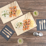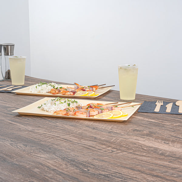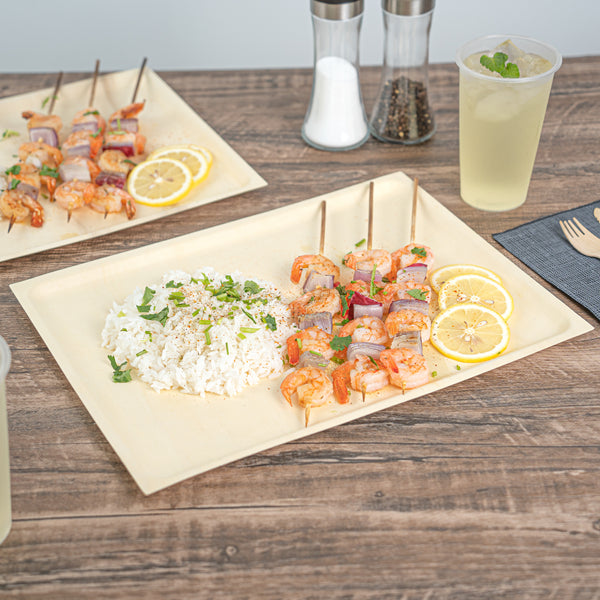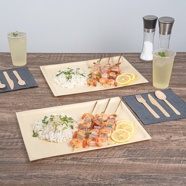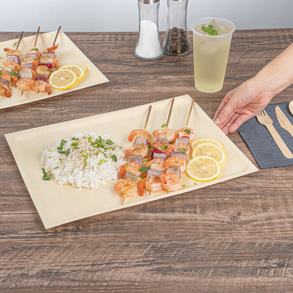 Serve your favorite dishes with our Taipei Rectangle Natural Poplar Plates. Crafted from poplar wood, these serving plates are durable and suitable for holding hot or cold food items. To accompany saucy dishes while maintaining their integrity, these party plates are constructed with a greaseproof design, ensuring optimal performance throughout use. Ideal for eco-conscious catering companies and restaurants, these disposable plates are biodegradable and commercially compostable. To enhance your table setting with a modern touch, these serving dishes feature a rectangular shape, creating an elegant presentation for a variety of culinary delights. With a minimalistic neutral finish, these disposable dinner plates effortlessly complement any table decor, adding a touch of sophistication to your dining experience. Measuring 14.5 inches in length by 10.75 inches in width, these dinner plates provide ample room for guests to enjoy their meals. Sold in a 200 count box. These items will only degrade outside of the traditional solid waste stream.