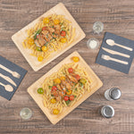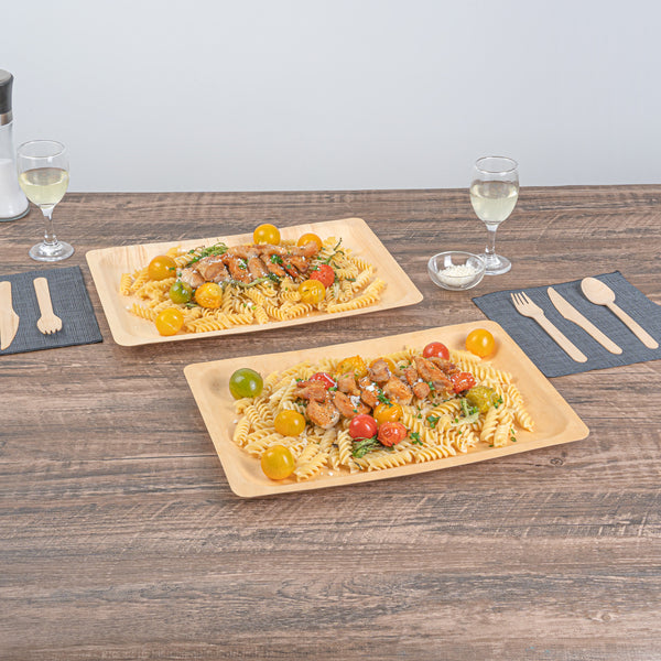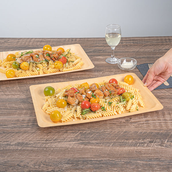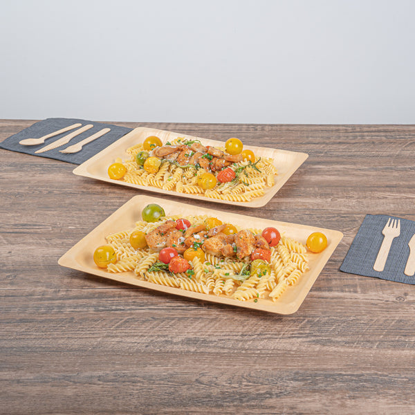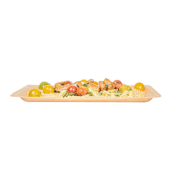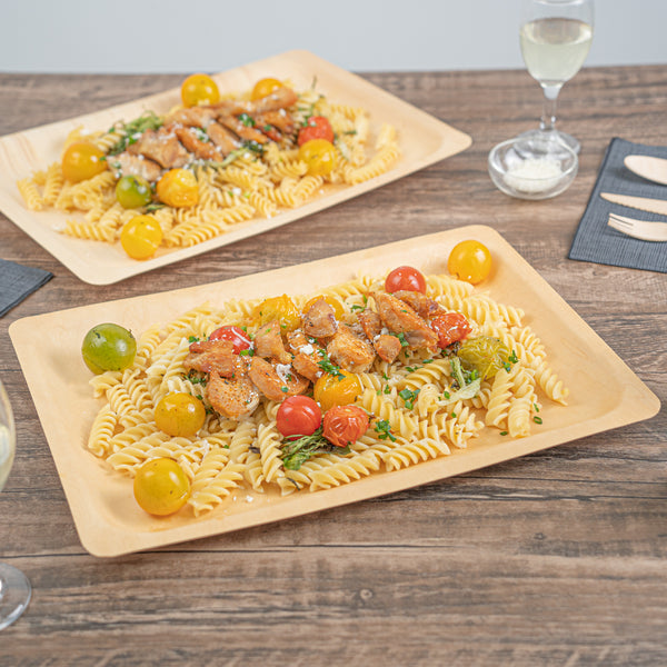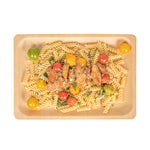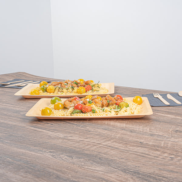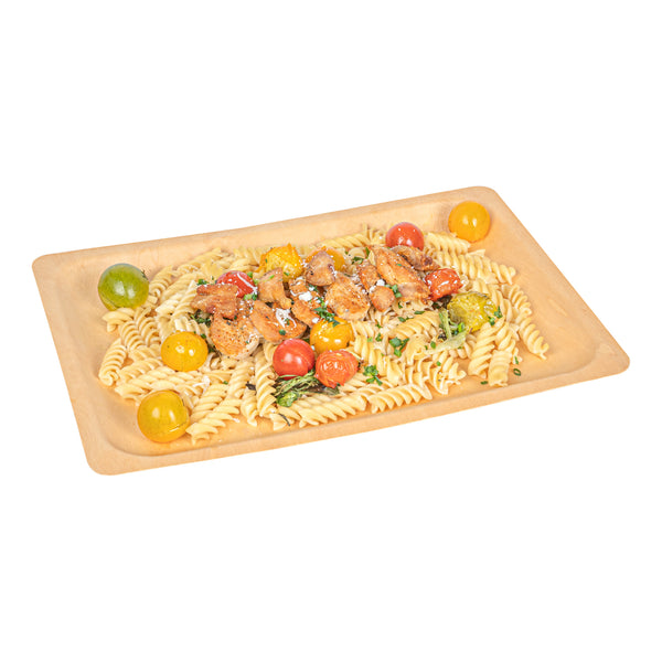 Create a colorful fruit display with our Taipei Rectangle Natural Poplar Plates. Robustly crafted from poplar wood, these party plates are ideal for serving a variety of hot and cold dishes, offering versatility for your culinary presentations. These serving plates are greaseproof to easily serve a variety of dishes without concerns of leakage or seepage. Ideal for eco-conscious businesses, these disposable plates are biodegradable and commercially compostable. Designed with a rectangular silhouette, these food plates enhance your presentation with a modern look. These serving dishes have a neutral finish that adds a touch of timeless elegance to your tablescapes and infuses a warm, inviting atmosphere into your dining experience. Measuring 14.17 inches in length by 9.84 inches in width, these disposable appetizer plates are ideal for serving generous main courses or elaborate spreads. Sold in a 200 count box. These items will only degrade outside of the traditional solid waste stream.