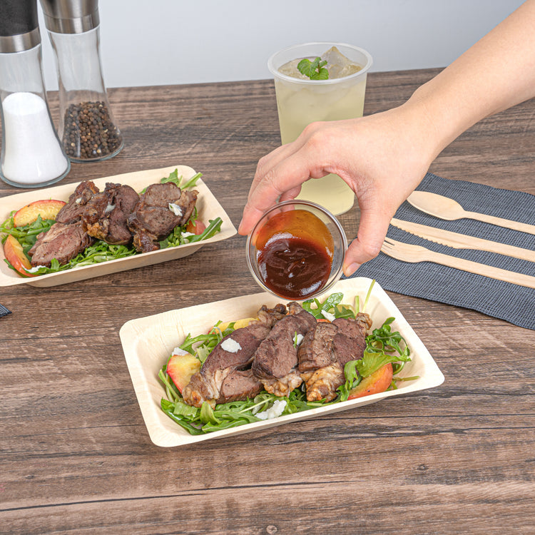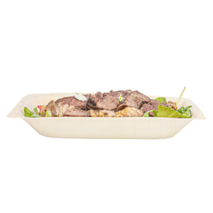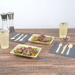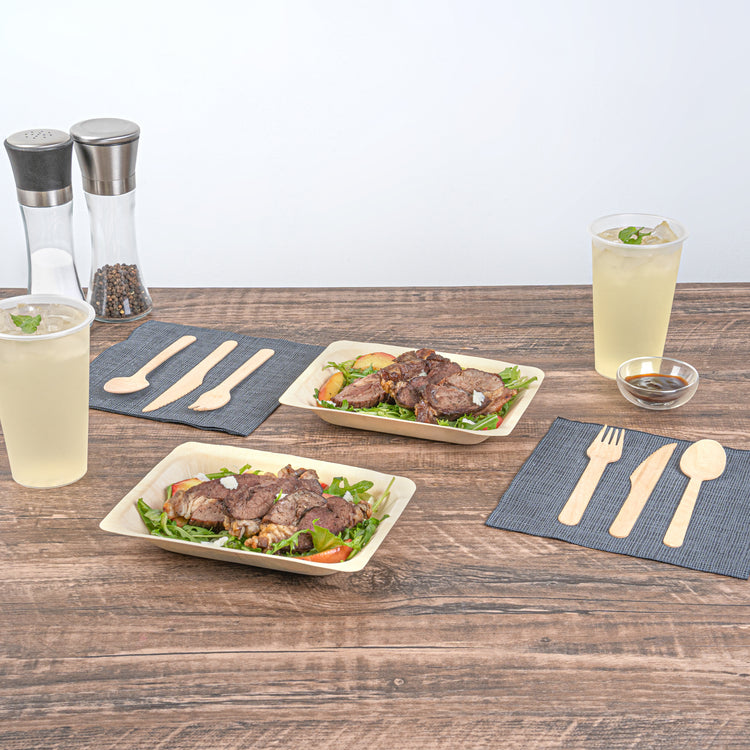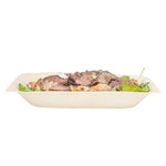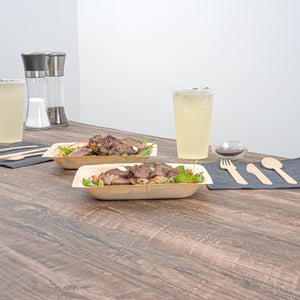 Present bite-sized fare with our Taipei Rectangle Natural Poplar Plates. These serving plates are crafted from poplar wood and are ideal for serving piping hot stir-fries to refreshing chilled salads, enhancing the diversity of your serving options. With a greaseproof construction, these party plates prevent oily or saucy leaks, ensuring a mess-free dining experience. These food plates are biodegradable and commercially compostable, showcasing your eco-conscious practices to your patrons. The rectangular shape of these disposable plates creates a sleek and sophisticated look for your culinary delights. These serving dishes have a neutral finish that blends with a variety of tablescapes, adding an exquisite touch that elevates the overall presentation. Measuring 7.75 inches in length by 5.5 inches in width by 1 inch in height, these rectangle plates offer ample space for serving various appetizers. Sold in a 50 count box. These items will only degrade outside of the traditional solid waste stream.