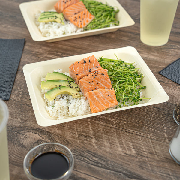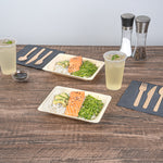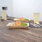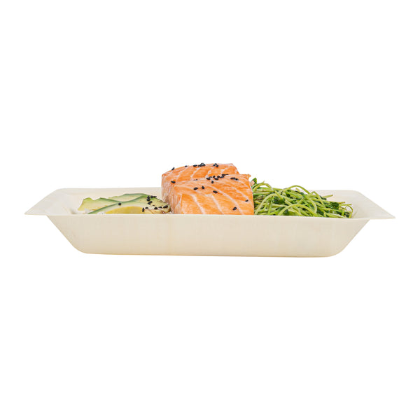 Add style to your food presentation with our Taipei Rectangle Natural Poplar Plates. These serving plates are crafted from poplar wood and are durable, ideal for serving various food items such as piping hot lasagna to chilled fruit salads. With a greaseproof construction, these party plates ensure a mess-free dining experience. These disposable plates are biodegradable and commercially compostable, providing a responsible option for your dining requirements. The rectangular shape of these food plates adds a touch of modernity and sophistication to your dining experience. These serving dishes have a neutral finish that complements a variety of table settings and allows the vibrant colors of your culinary creations to take center stage. Measuring 8.75 inches in length by 6.75 inches in width by 1.25 inches in height, these disposable dinner plates provide ample room to serve generous portions, ensuring your guests are satisfied. Sold in a 200 count box. These items will only degrade outside of the traditional solid waste stream.