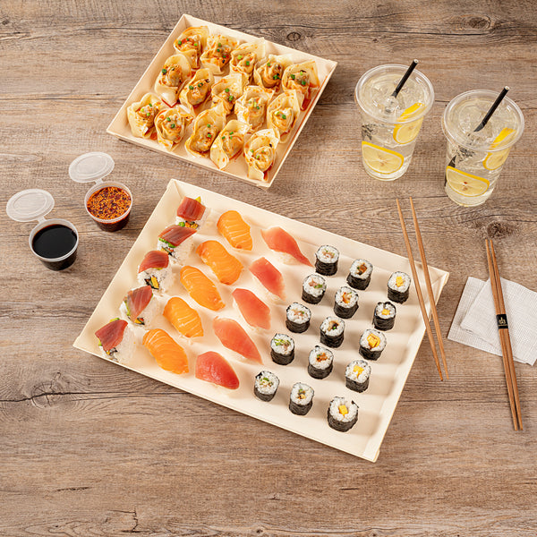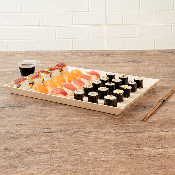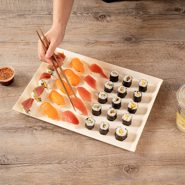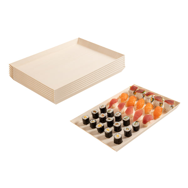 Showcase your culinary creations using our Taipei Rectangle Poplar Plates. Constructed from eco-friendly poplar wood, these rectangle poplar plates are resilient and sturdy, designed to flawlessly serve a plethora of meals without succumbing to cracks or chips. Coated with a glassine paper film lining, each biodegradable poplar plate offers a grease-resistant feature that is adaptable for both hot and cold fares. These disposable plates are single-use products designed specifically to alleviate the burdens of post-meal dishwashing and cleanup. With dimensions of 15.25 inches in length by 10.75 inches in width by 1 inch in height, these commercially compostable dinner plates provide ample space to plate an assortment of food, from bite-sized appetizers to generous main courses. Shipped in a 100 count box. This item will only degrade outside of the traditional solid waste stream.