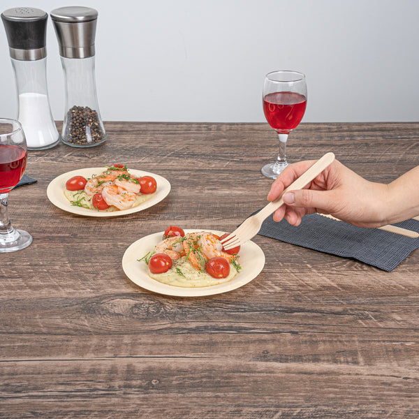 Serve savory pasta with our Taipei Round Natural Poplar Plates. Crafted from durable poplar wood, these round plates can hold an array of dishes, from savory pasta dishes and grilled meats to sweet treats like cakes and fruit desserts. These serving plates are greaseproof and ensure a mess-free eating experience when serving sauce-laden dishes. To showcase your commitment to environmental sustainability at your foodservice establishment, these party plates are biodegradable and commercially compostable. Featuring a round shape, these disposable plates provide a classic and versatile presentation for a variety of culinary offerings. These food plates have a neutral finish and offer a versatile backdrop that effortlessly complements various table settings, enhancing the visual appeal of your culinary presentations. Measuring 6 inches in diameter, these serving dishes are ideal for presenting a variety of culinary delights. Sold in a 200 count box. These items will only degrade outside of the traditional solid waste stream.