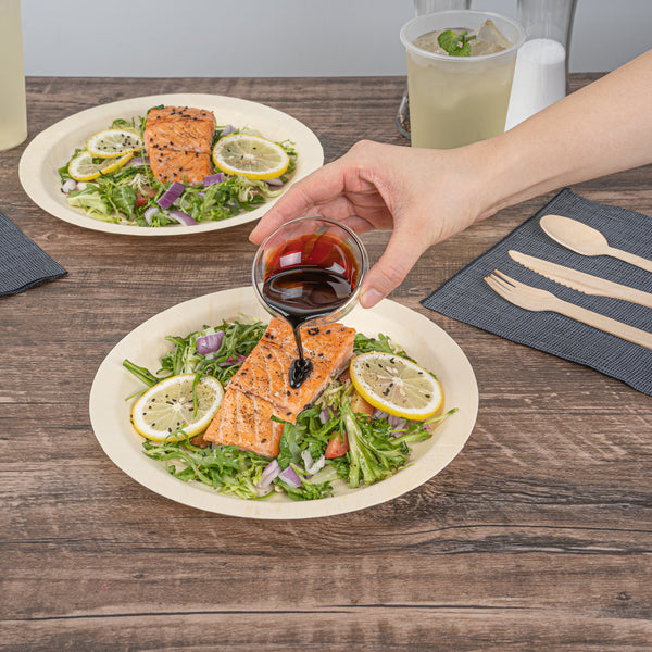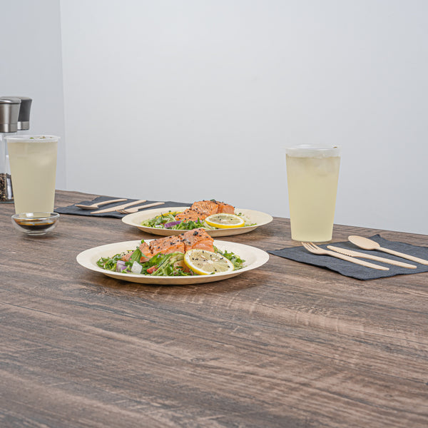 Stylishly serve meals with our Taipei Round Natural Poplar Plates. Crafted from durable poplar wood, these appetizer plates are ideal for serving a variety of dishes, from hot entrees to chilled appetizers. These serving plates are greaseproof and ensure a clean dining experience, making them ideal for dishes loaded with sauces or dressings. Ideal for eco-conscious foodservice establishments, these food plates are biodegradable and commercially compostable. These serving dishes have a round shape that adds a modern and sophisticated touch to any food presentation. Featuring a neutral color, these disposable plates complement any table setting effortlessly, ideal for various parties and occasions. These party plates measure 9.5 inches in diameter and are ideal for serving hefty portions of food. Sold in a 200 count box. These items will only degrade outside of the traditional solid waste stream.
