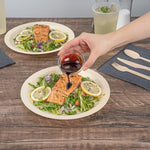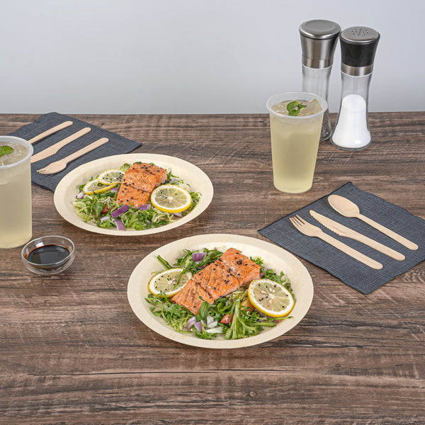 Stylishly serve meals with our Taipei Round Natural Poplar Plates. Crafted from durable poplar wood, these appetizer plates are ideal for serving a variety of dishes, from hot entrees to chilled appetizers. These serving plates are greaseproof and ensure a clean dining experience, making them ideal for dishes loaded with sauces or dressings. Ideal for eco-conscious foodservice establishments, these food plates are biodegradable and commercially compostable. These serving dishes have a round shape that adds a modern and sophisticated touch to any food presentation. Featuring a neutral color, these disposable plates complement any table setting effortlessly, ideal for various parties and occasions. These party plates measure 9.5 inches in diameter and are ideal for serving hefty portions of food. Sold in a 50 count box. These items will only degrade outside of the traditional solid waste stream.