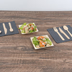 Unleash a new dining experience with our Taipei Square Natural Poplar Plates. Crafted from resilient poplar wood, these party plates are versatile enough to serve an array of culinary delights, from sizzling skewers to refreshing appetizers. These serving plates are greaseproof to avoid leaks from saucy dishes, ensuring a clean dining experience. To showcase your commitment to the environment, these disposable plates are biodegradable and commercially compostable. The square design of these food plates adds a modern and distinctive flair to your table presentation, contributing to a contemporary aesthetic for a variety of culinary delights. With a neutral finish, these serving dishes create an elegance that highlights your served food. These appetizer plates measure 5 inches in length by 5 inches in width. Sold in a 50 count box. These items will only degrade outside of the traditional solid waste stream.