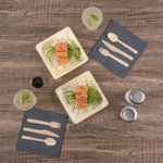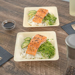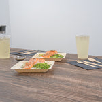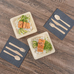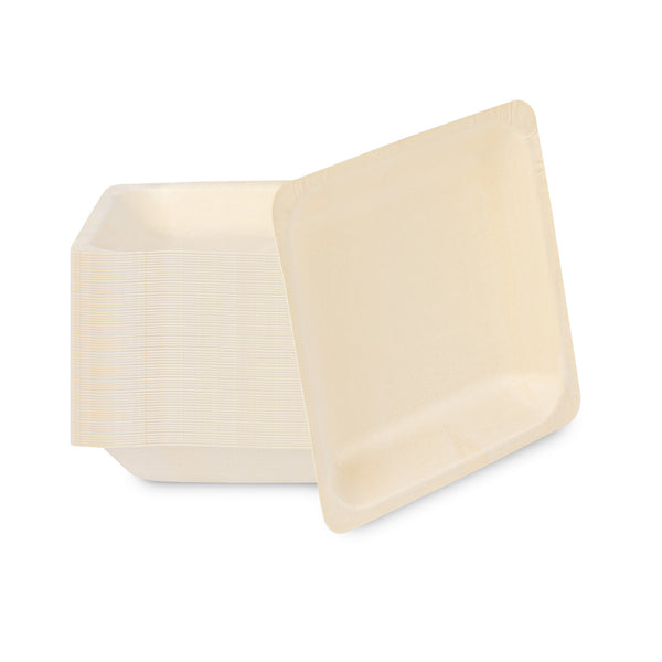Serve in style with our Taipei Square Natural Poplar Plates. Made from sturdy poplar wood, these party plates are ideal for serving a range of dishes, from steaming risottos and chilled fruit salad. Designed to be greaseproof, these food plates are ideal for serving sauces or oily dishes without worrying about messy leaks. These disposable plates are biodegradable and commercially compostable, offering an eco-friendly alternative to plastic plates. The square shape of these serving plates adds a contemporary and stylish dimension to your food presentation, offering a sleek and modern aesthetic. With a neutral finish that complements any table setting, these appetizer plates are versatile for various settings, making them suitable for all types of gatherings and events. Each serving dish measures 7 inches in length by 7 inches in width by 1 inch in height. Sold in a 50 count box. These items will only degrade outside of the traditional solid waste stream.