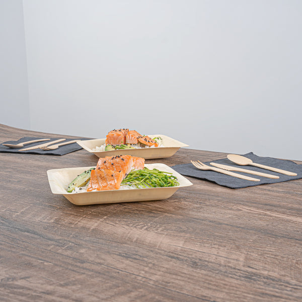 - Poplar wood provides a biodegradable and commercially compostable serving option
