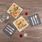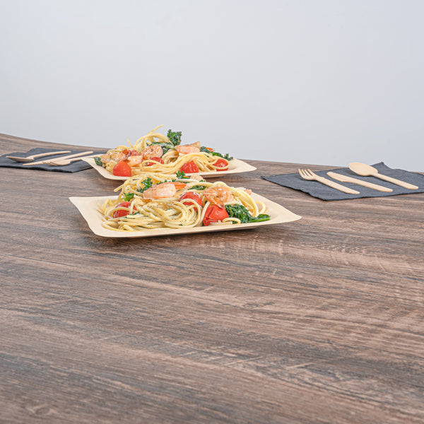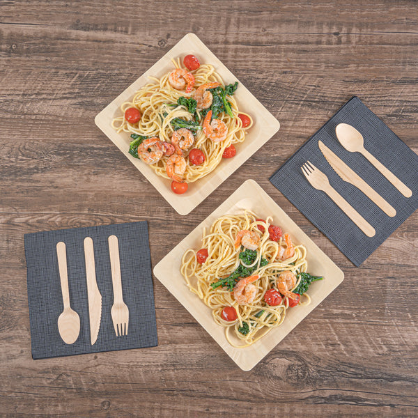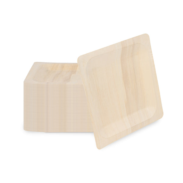 Present your food elegantly with our Taipei Square Natural Poplar Plates. Crafted from durable poplar wood, these food plates can be used for sizzling stir-fries and refreshing salads at any catered gathering. These serving plates are greaseproof to prevent any messy dining situations, especially when handling dishes packed with sauces. Designed to be biodegradable and commercially compostable, these party plates showcase a commitment to environmentally-friendly alternatives for your gatherings. These serving dishes have a square shape that exudes a modern and elegant aura that elevates your food presentation. With a neutral finish, these disposable plates offer a versatile and understated backdrop, seamlessly complementing any table setting for a variety of occasions. Measuring 8.5 inches in length by 8.5 inches in width, these square plates can be used for serving various food items. Sold in a 200 count box. These items will only degrade outside of the traditional solid waste stream.