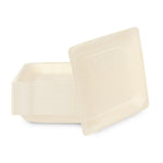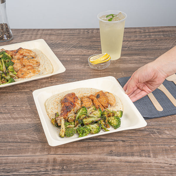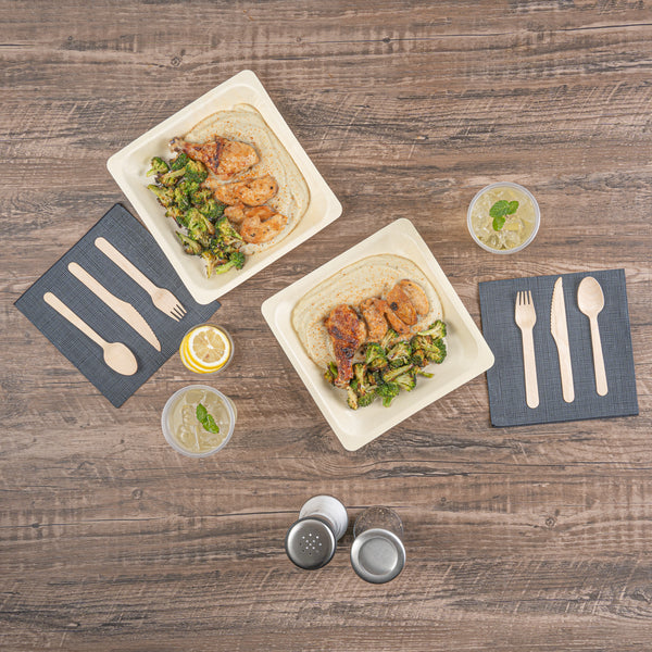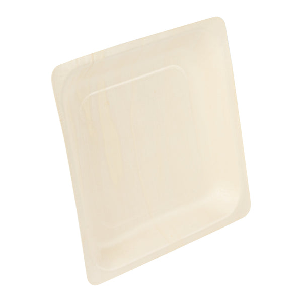 Serve savory noodles with our Taipei Square Natural Poplar Plates. Made of sturdy poplar wood, these party plates can carry hot and cold dishes such as piping hot pasta to chilled fruit salads. Featuring a greaseproof design, these disposable plates are suitable for serving saucy dishes without any worry of leaks. These serving plates are biodegradable and commercially compostable, ideal for eco-conscious foodservice establishments looking to minimize their environmental impact. The modern square design of these serving dishes enhances the appeal of your food, adding a contemporary touch to your presentation. These pasta plates feature a neutral finish, providing a versatile backdrop for showcasing your favorite dishes. Each food plate measures 9 inches in length by 9 inches in width by 1 inch in height. Sold in a 50 count box. These items will only degrade outside of the traditional solid waste stream.