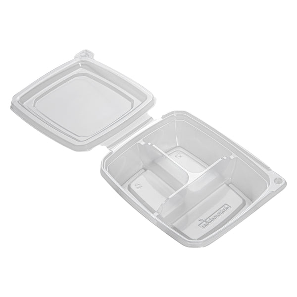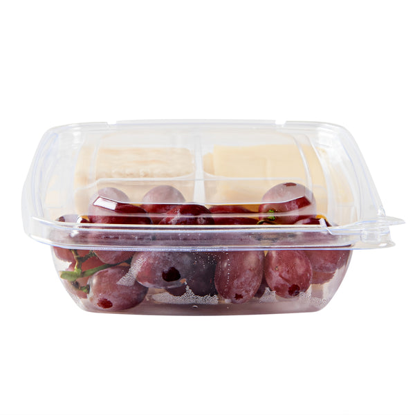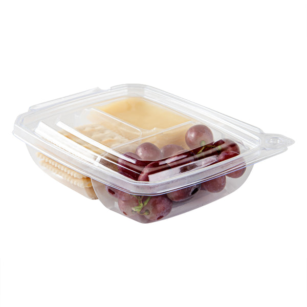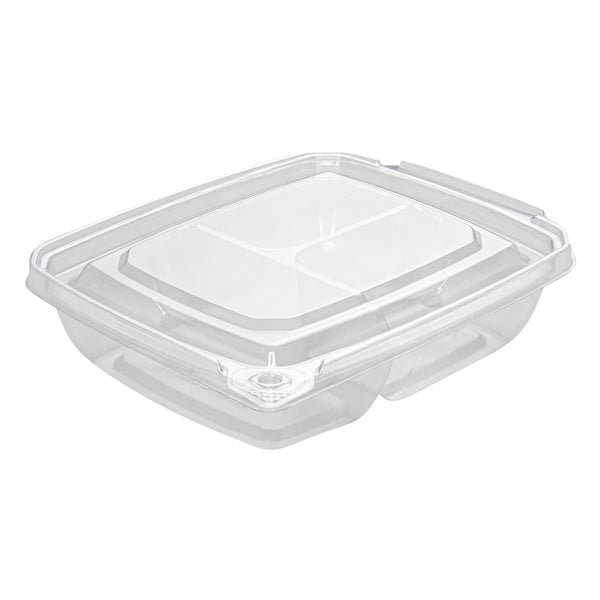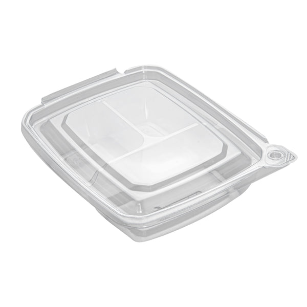 11 OZ PLASTIC CONTAINER - WITH LID, TAMPER-EVIDENT, 3 COMPARTMENTS