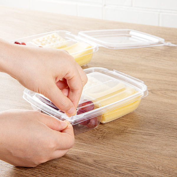 These plastic to go containers can be used for meals, salads, or snack takeaways. Multi-use ready!