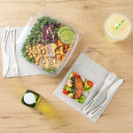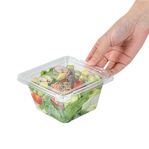 12 OZ SQUARE CLEAR PLASTIC SALAD BOWL - WITH LID, TAMPER-EVIDENT